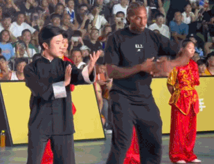 勾当现场,两人会不会一下?伦纳德先是身穿唐拆表态,一套动做竣事之后,伦纳德还秀起了中国技击的抱拳行礼,